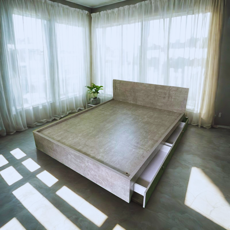 Sản phẩm giường ngủ có ngăn kéo được thiết kế theo phong cách tối giản nhưng đầy tinh tế. Đường nét vuông vức, gọn gàng cùng bề mặt nhẵn mịn mang lại cảm giác sang trọng, phù hợp với nhiều không gian nội thất khác nhau từ phòng ngủ cá nhân, phòng ngủ gia đình đến phòng trọ cao cấp.
