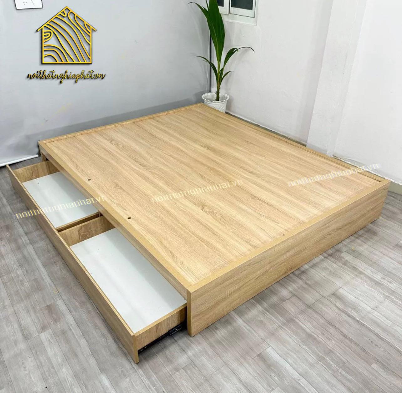 Với mặt giường vuông vức, sát đất, kết hợp cùng các hộc tủ kéo thông minh được tích hợp hai bên, sản phẩm mang lại sự tiện nghi tuyệt vời cho việc lưu trữ đồ dùng cá nhân, quần áo, chăn màn hay sách vở.