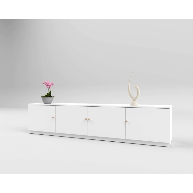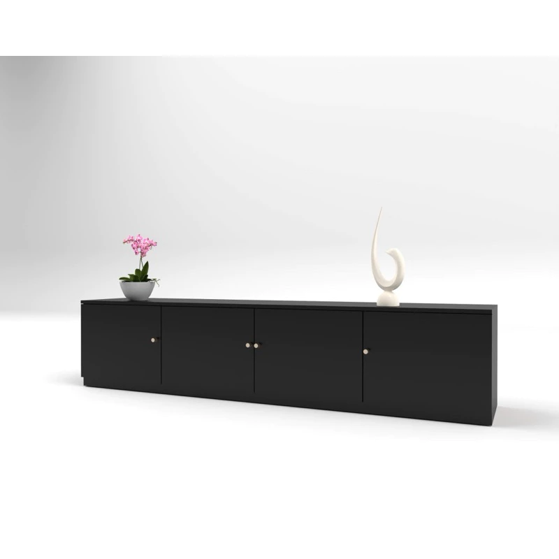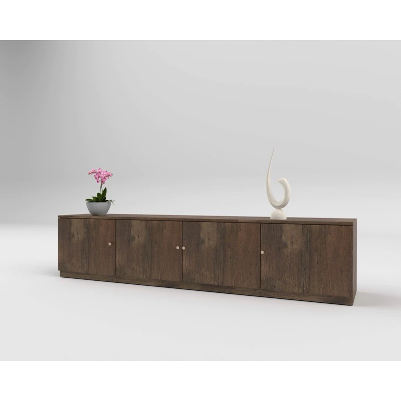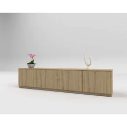 Sản phẩm có thiết kế gồm nhiều hộc tủ và ngăn kéo, cho phép bạn vừa đặt tivi, vừa trưng bày đồ decor như sách, loa, chậu cây nhỏ hoặc lưu trữ các vật dụng cần thiết như remote, giấy tờ, sạc, v.v. Cửa tủ dạng kéo hoặc mở đều dễ sử dụng, hạn chế bụi bẩn, và giúp căn phòng luôn gọn gàng, ngăn nắp.