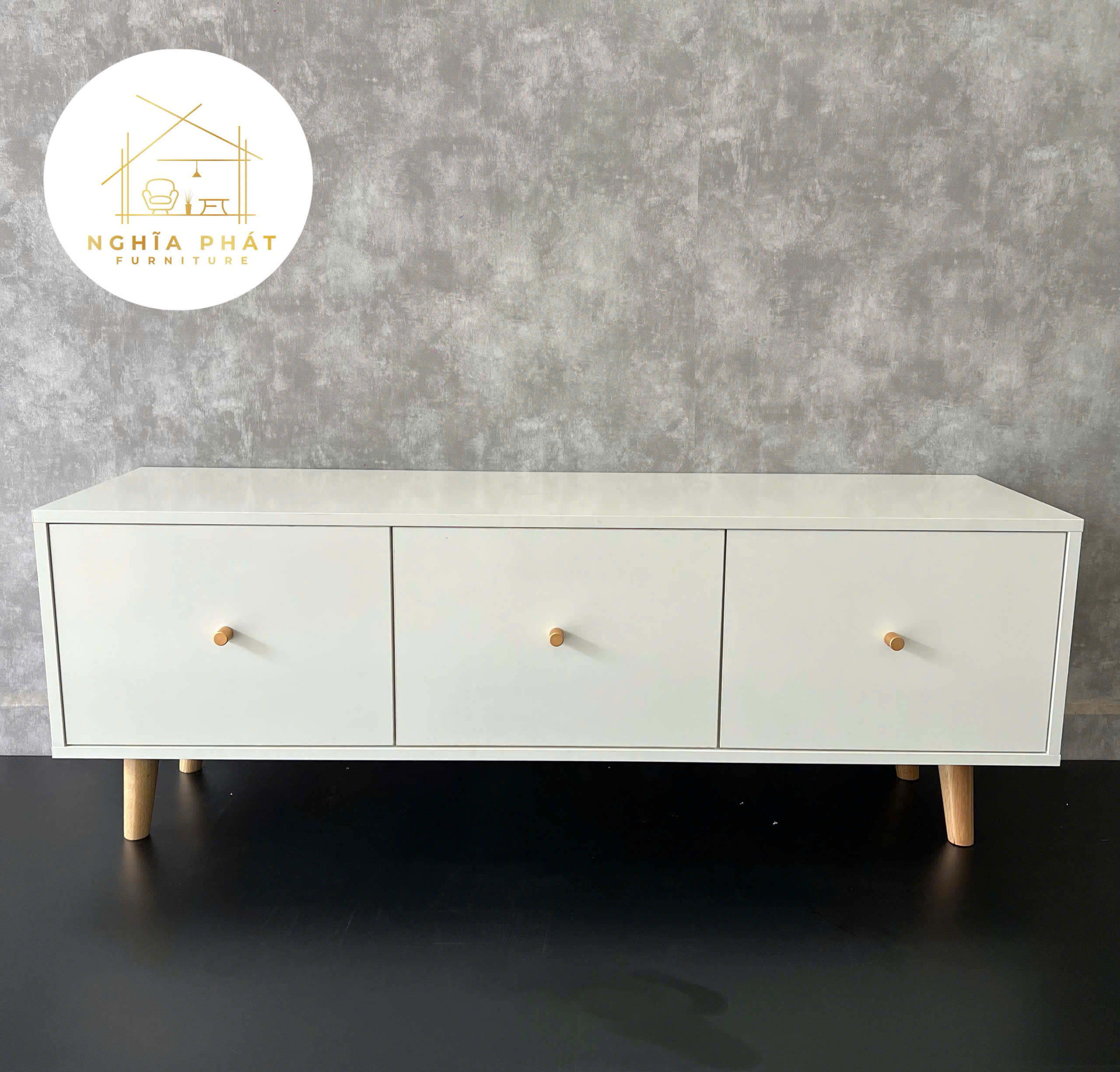 Bạn đang tìm kiếm một mẫu kệ tivi đẹp, hiện đại và phù hợp với nhiều không gian sống? Kệ tivi gỗ công nghiệp màu trắng của Nghĩa Phát Furniture sẽ là lựa chọn lý tưởng cho phòng khách, phòng ngủ hoặc căn hộ có diện tích vừa và nhỏ. Với kích thước tiêu chuẩn 149x40x45 cm, sản phẩm không chỉ tối ưu diện tích mà còn giúp không gian trở nên gọn gàng, sang trọng hơn.